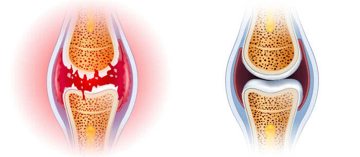 Sklepi in hrbtenica se z leti obrabijo, uničijo pa jih tudi prekomerna telesna teža, intenzivno fizično delo, nošenje težkih predmetov, pretirana telesna aktivnost, poškodbe in modrice. Sinovialna tekočina in hrustanec se razgradita. Sklepi so kot tečaji brez olja: začnejo se nenehno drgniti in degenerirati. Sčasoma začnete čutiti togost in strašno bolečino, ki preprečuje normalno gibanje. Razvija se vnetje in huda degeneracija.